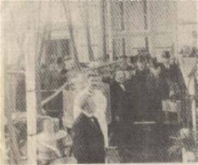 Ondanks de slechte kwaliteit van naast staande krantenfoto geef ik deze toch weer. Zij is te merkwaardig. Na 81 jaar ontdekte het Brabants Nieuwsblad deze foto, en schreef eronder: ‘Directeur Jantje Galema geeft Tilburgse notabelen een rondleiding door de nieuwe melkfabriek.’